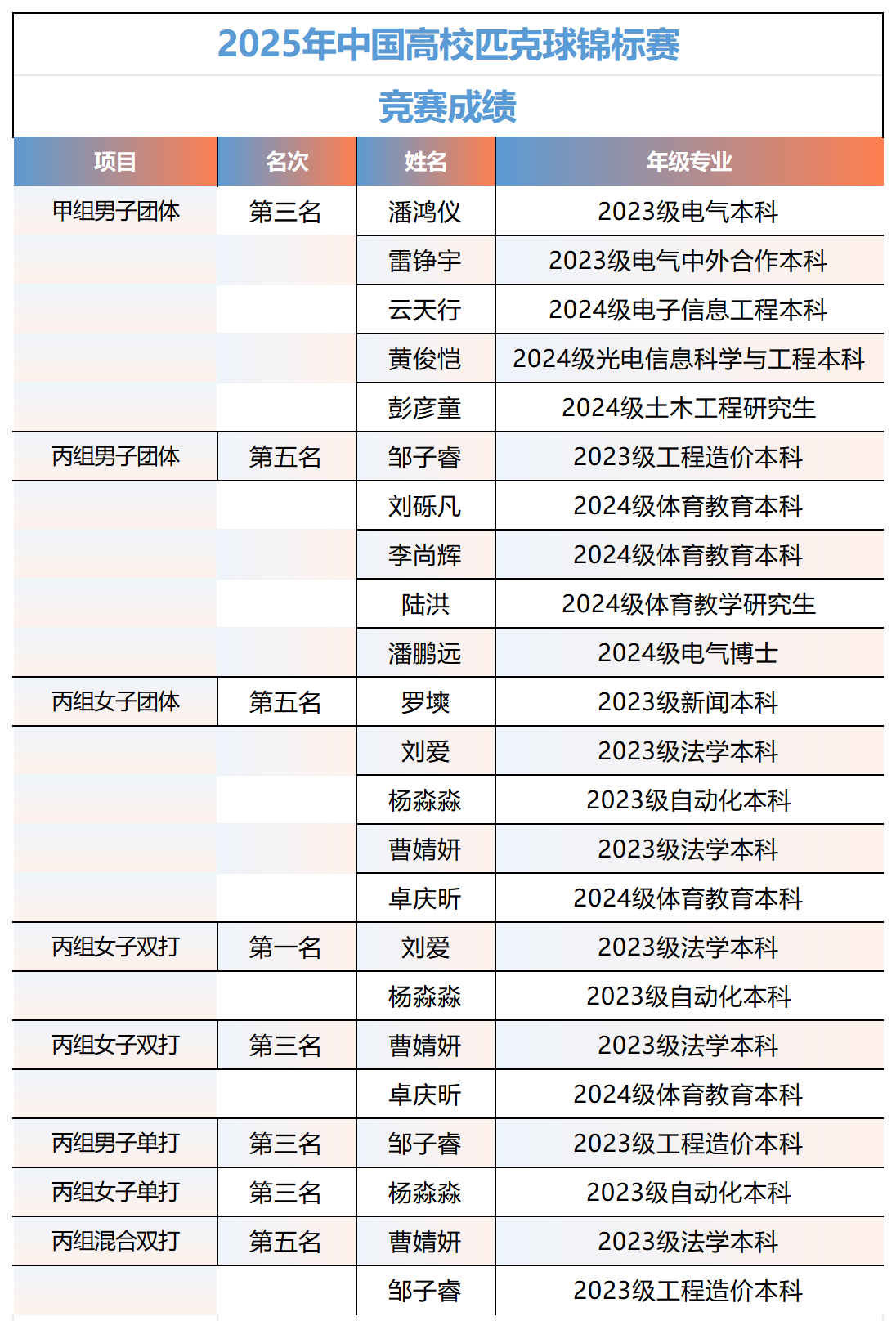 欧洲杯 在2025年中国高校匹克球锦标赛中斩获1金4铜