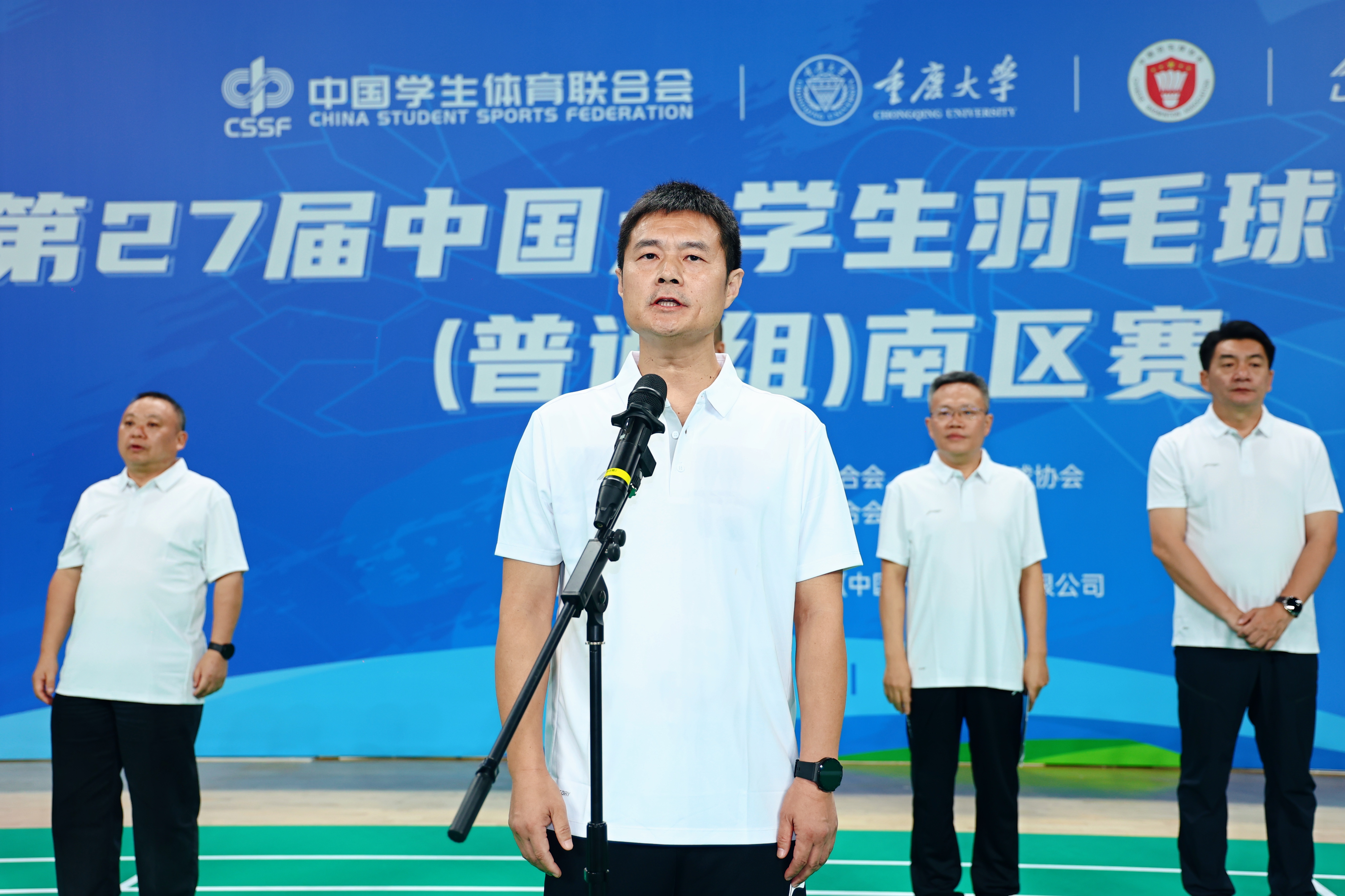 中国学生体育联合会大学竞赛部主任籍强、中国学生体育联合会大学羽毛球分会秘书长裘鹏、重庆市体育局副局长张周勇、欧洲杯